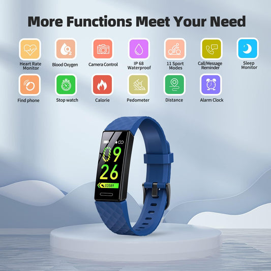 Fitness Tracker, Fitness Watch Activity Tracker with Pedometers, Heart Rate & Sleep Monitor, Stopwatch, Step Calorie Counter, Blood Oxygen, IP68 Waterproof Tracker Watch for Man and Women(Blue)